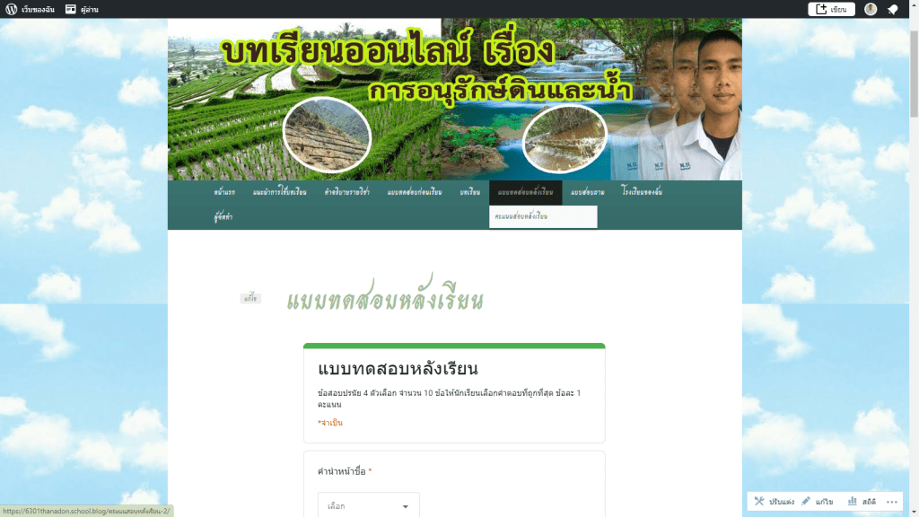 2.ผู้ศึกษาบทเรียนออนไลน์เรื่อง การอนุรักษ์ดินและน้ำ ทำแบบทดสอบก่อนเรียน