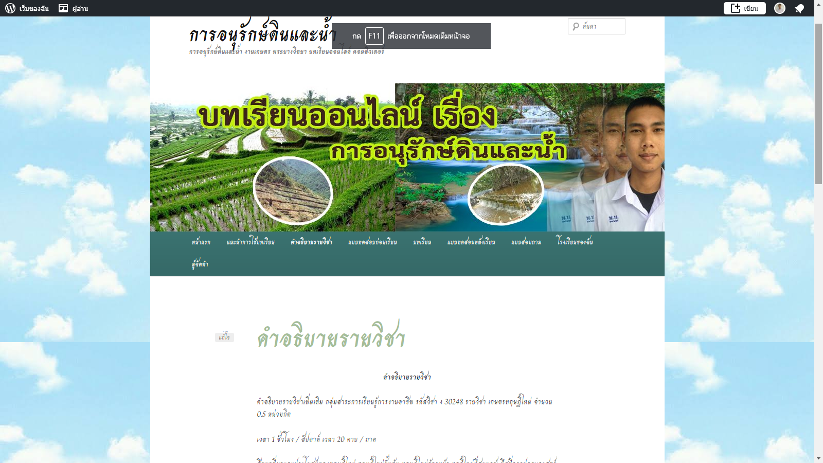 การอนุรักษ์ดินและน้ำ งานเกษตร พระบางวิทยา บทเรียนออนไลค์ คอมพิวเตอร์